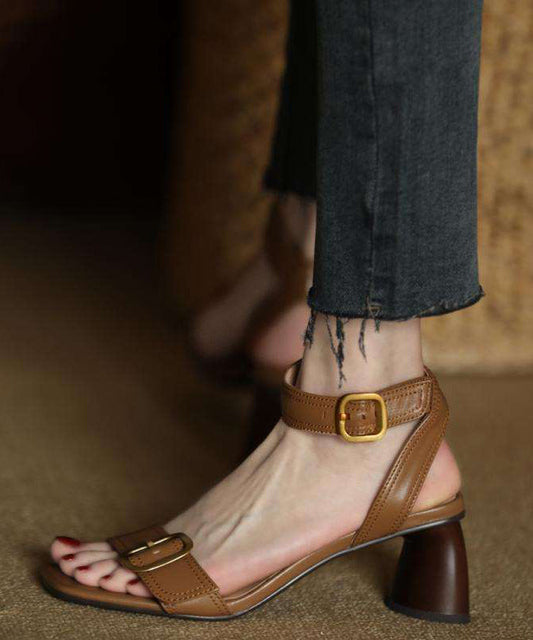 Heels High Black Sandals Splicing Toe Leather Faux Peep