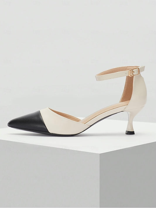 Heel Stylish Kitten Two-Tone Women's Toe Pointed Ankle