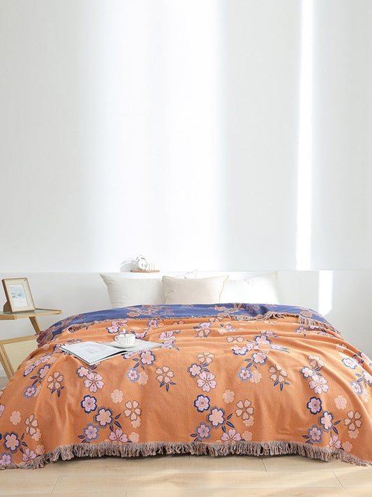 100% Cotton Flower Jacquard Bedcover Sofa Blanket FD007