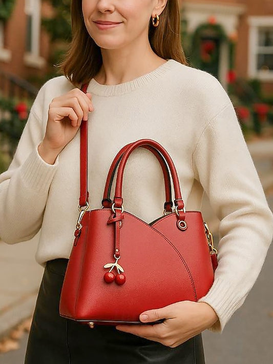 Women's Cherry Charm Faux Leather Handbag with Top Handle