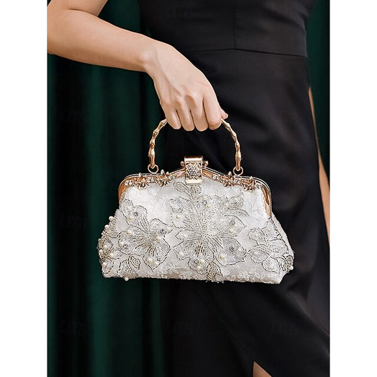 Women's Embroidered Lace Top Handle Evening Bag, Elegant