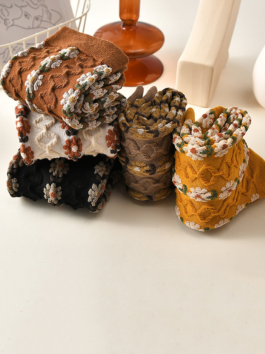 5 Pairs Women Autumn Artsy Flower Jacquard Socks RR013