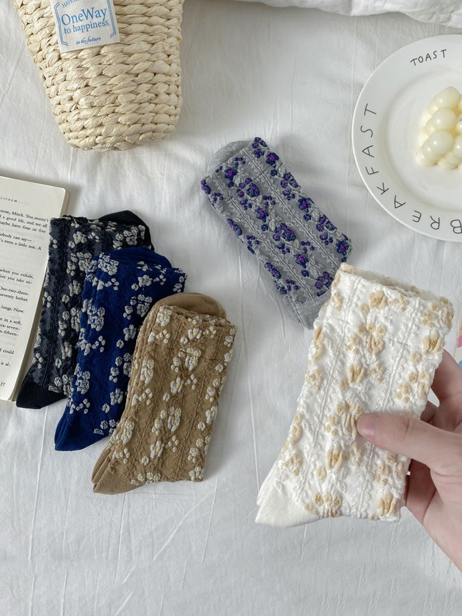5 Pairs Women Floral Jacquard Cotton Socks AK1035