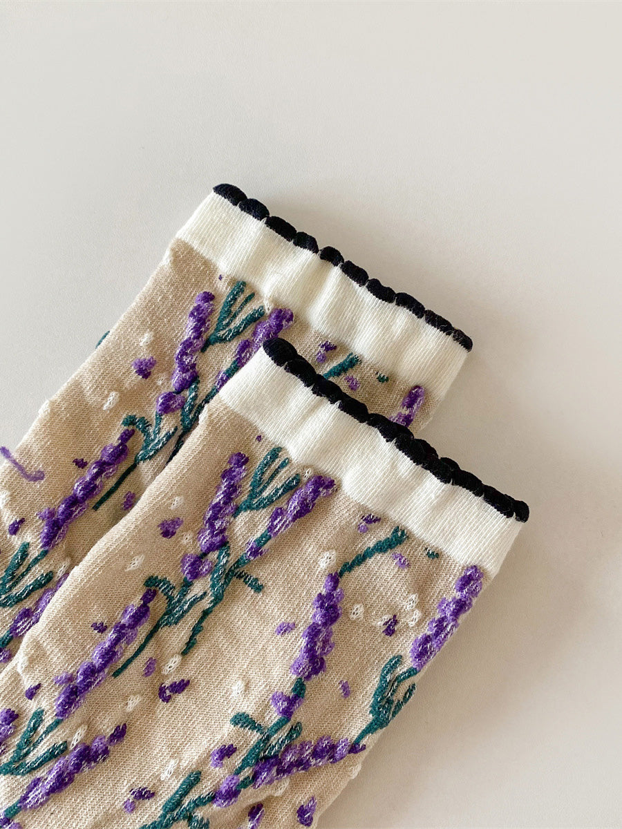 Get your feet blooming with these 5 pairs of colorful flower jacquard socks! Made of soft cotton, they'll keep your feet comfy while adding a touch of playful style to any outfit. Stay on trend without taking yourself too seriously.