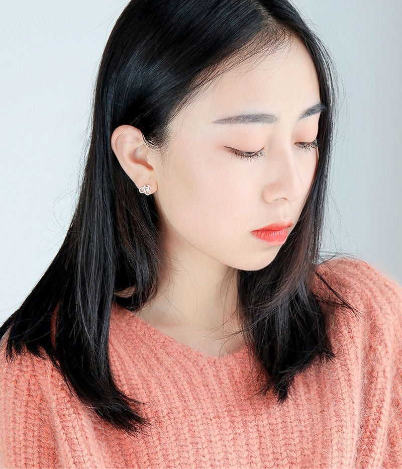 Cute Pink Crystal Pearl Tulle Floral Tassel Drop Earrings LL007