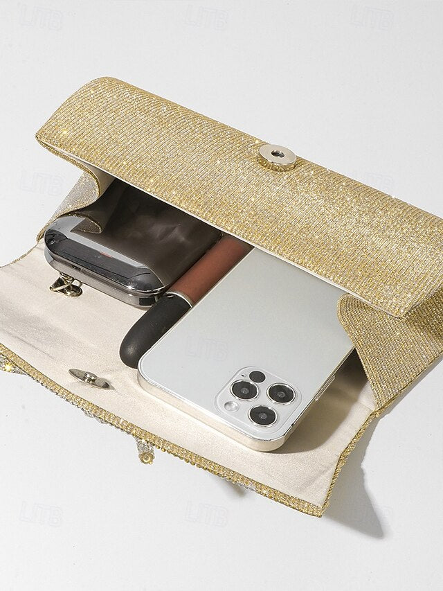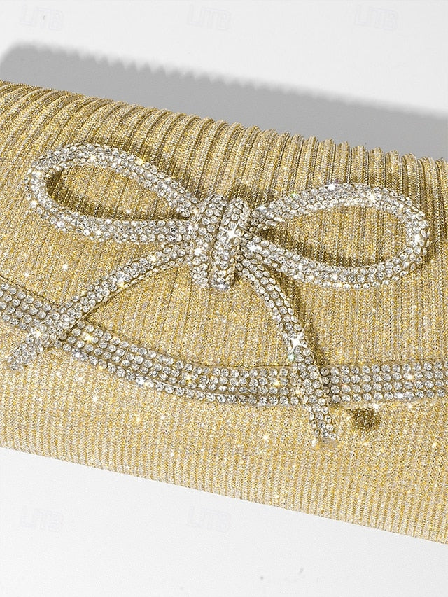 Gender: Women's, Type: Shoulder Bags, Evening Bag, Material: Polyester, Embellishment: Rhinestone, Bowknot, Pattern: Solid Color, Occasion: Wedding Party, Party, Width (cm): 5, Height (cm): 10, Length (cm): 22, Function: Large Capacity, Multi Carry, Category: Clutch,