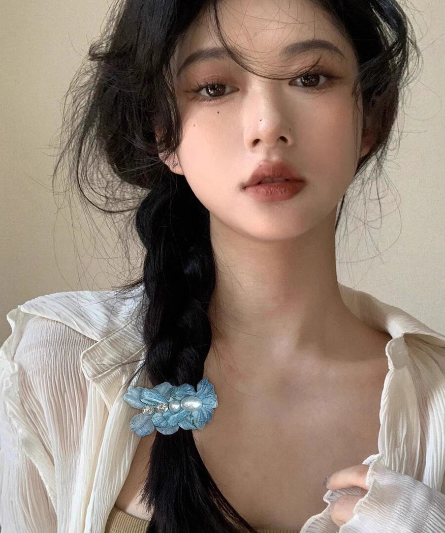Cute Blue Alloy Zircon Pearl Floral Hairpin