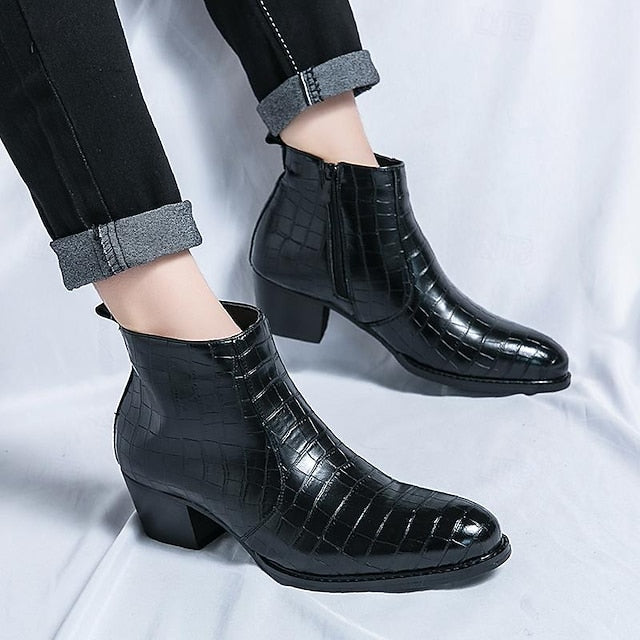 Ankle - Boots Brown Men's Crocodile Faux Pattern Leather