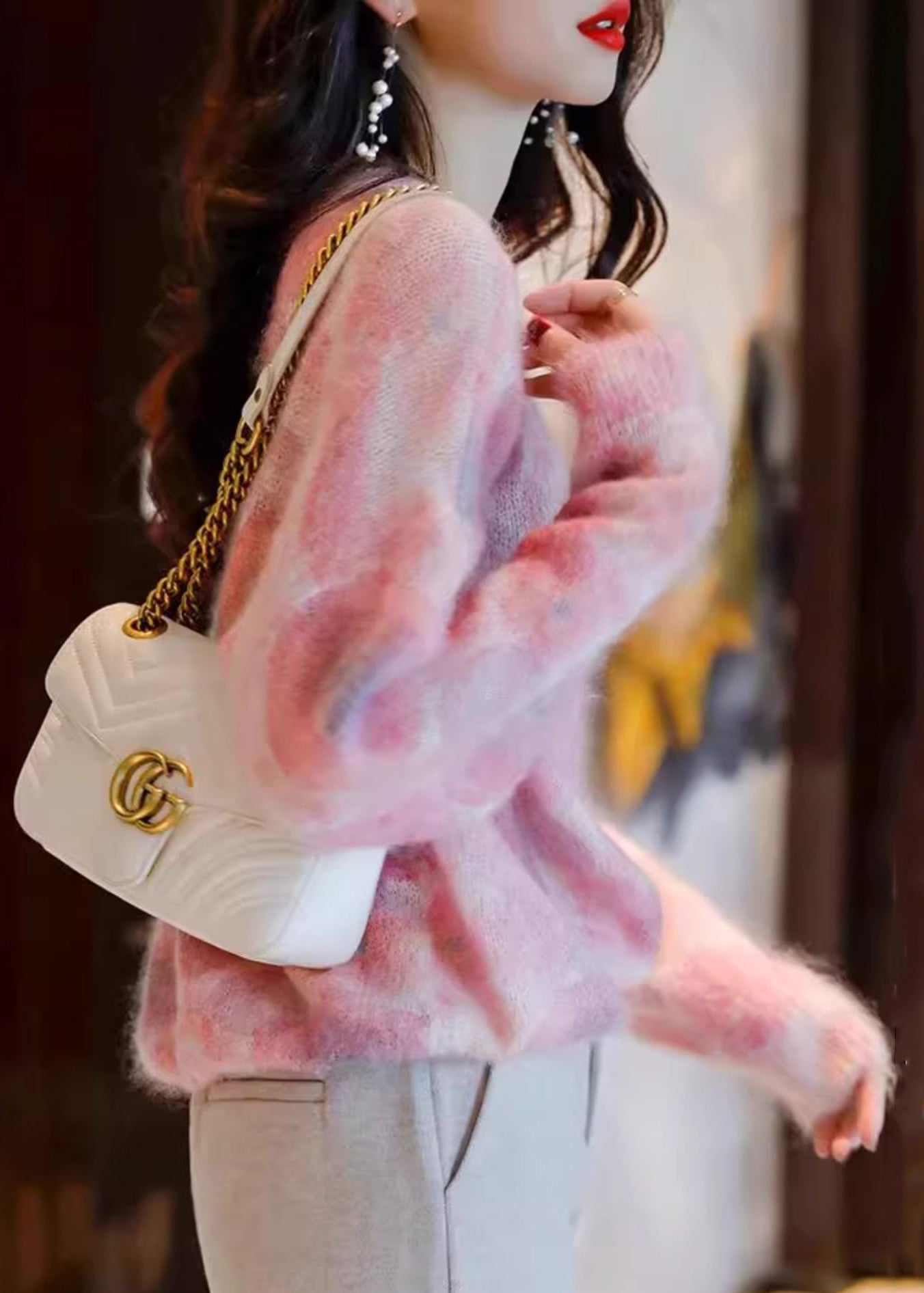 Art Pink O Neck Cozy Cotton Knit Sweaters Spring TF043