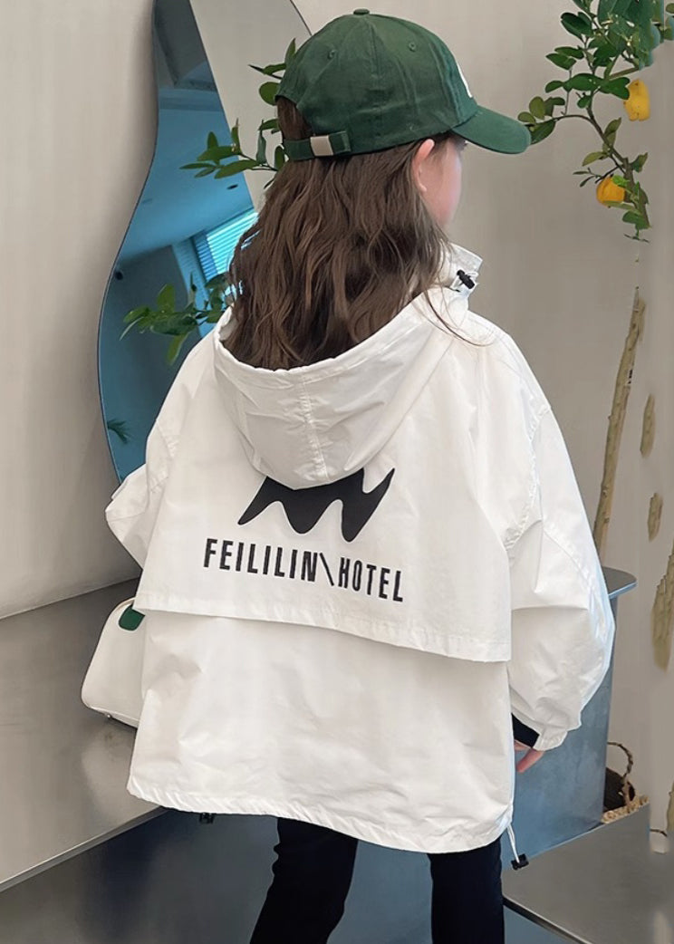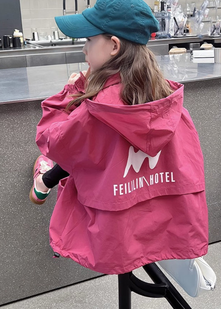 Art Rose Print Patchwork Kids Hooded Trench Coats Fall QV031