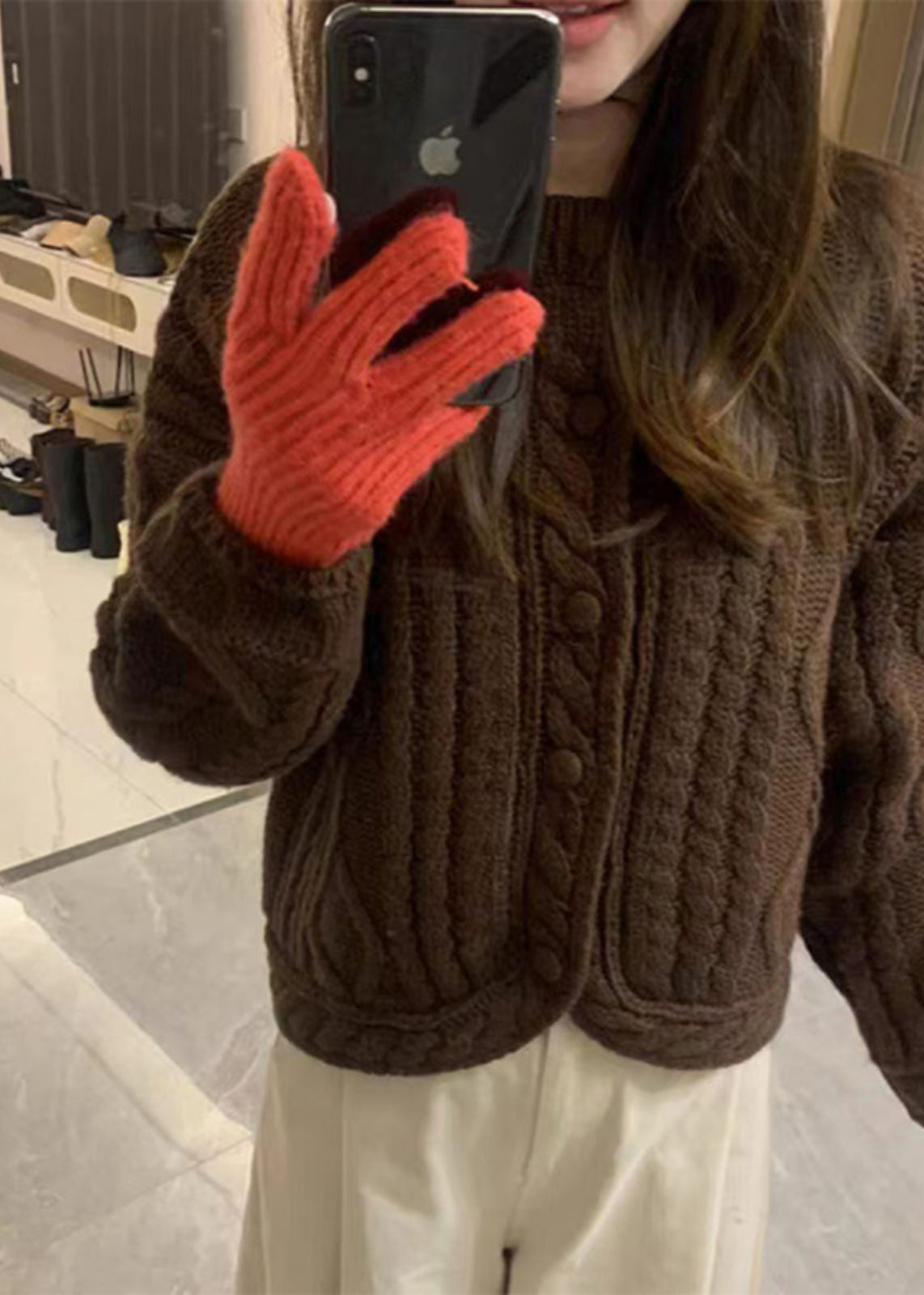 Art Yellow O-Neck Button Cozy Knit Cardigans Fall QP062