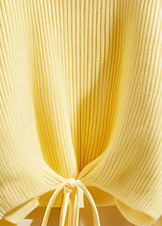 Art Yellow O Neck Lace Up Solid Knit Sweater Fall QS030