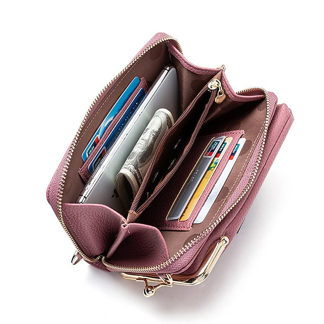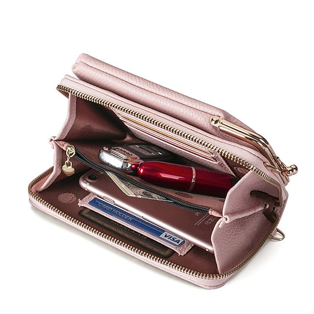 Gender: Women's, Type: Coin Purse, Mobile Phone Bag, Credit Card Holder Wallet, Material: PU Leather, Embellishment: Buttons, Pattern: Solid Color, Occasion: Shopping, Daily, Outdoor, Width (cm): 4.5, Height (cm): 18, Length (cm): 11, Function: Lightweight, Category: Crossbody Bag, Wallet,