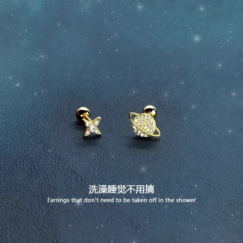 Barbell Star Silver Sterling Earring Rhinestone Asymmetrical