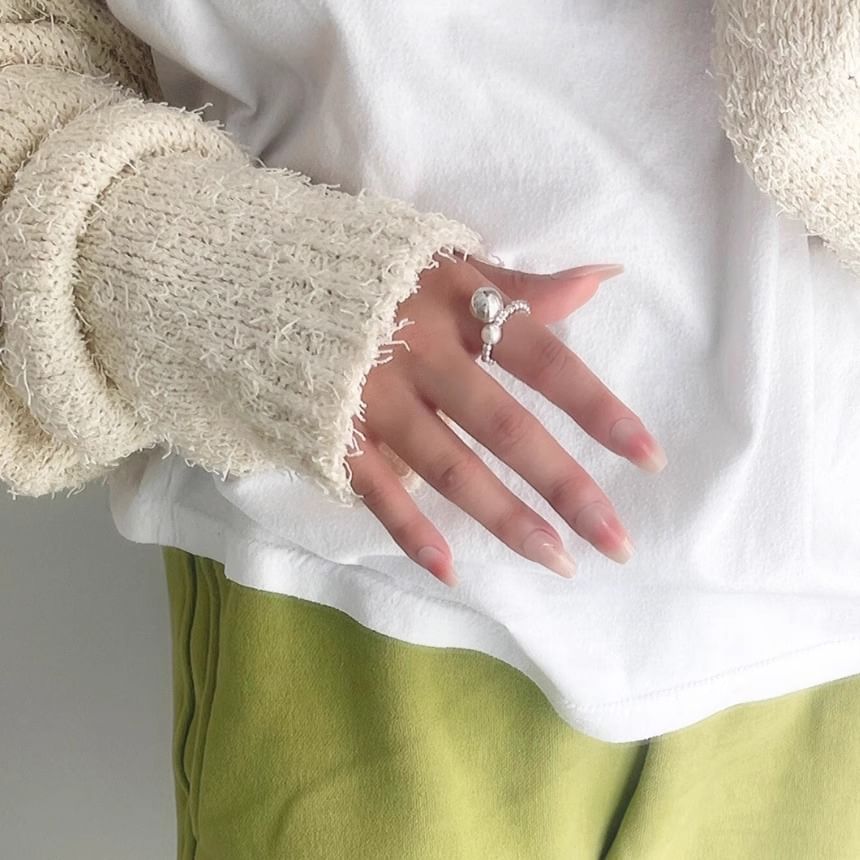 925 Sterling Silver Faux Pearl Beaded Elastic Ring