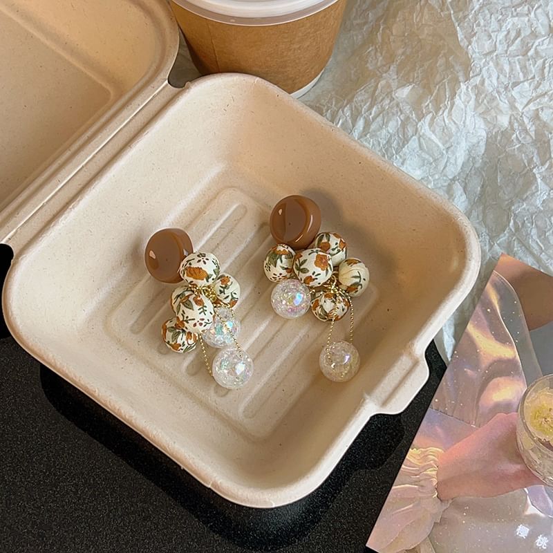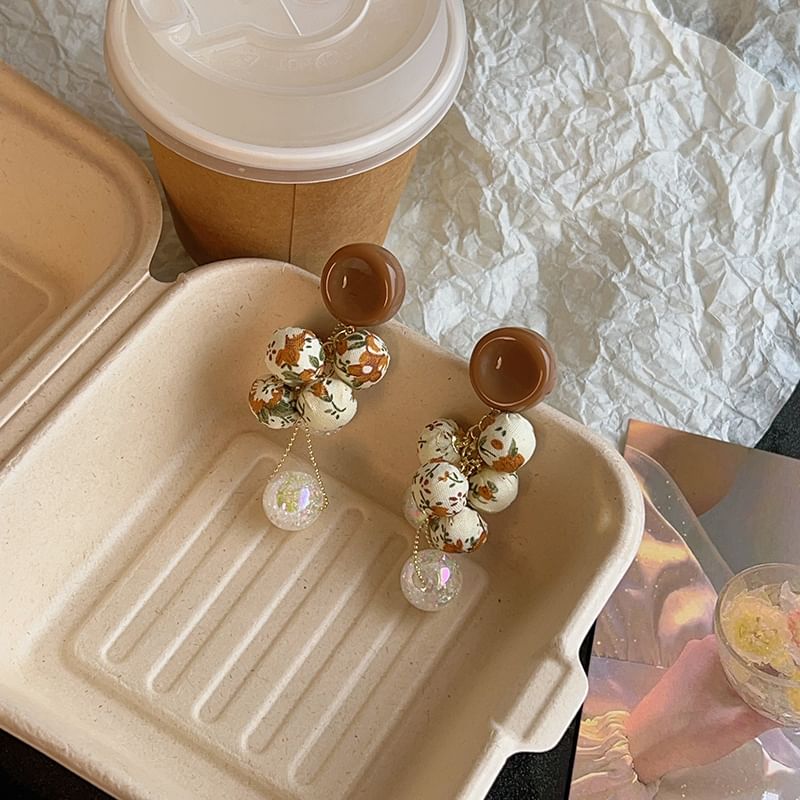 Floral Print Fabric Beaded Drop Earring