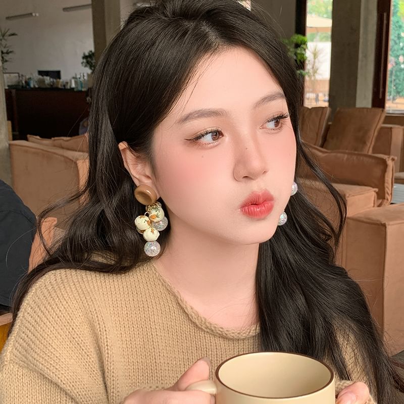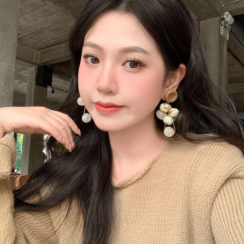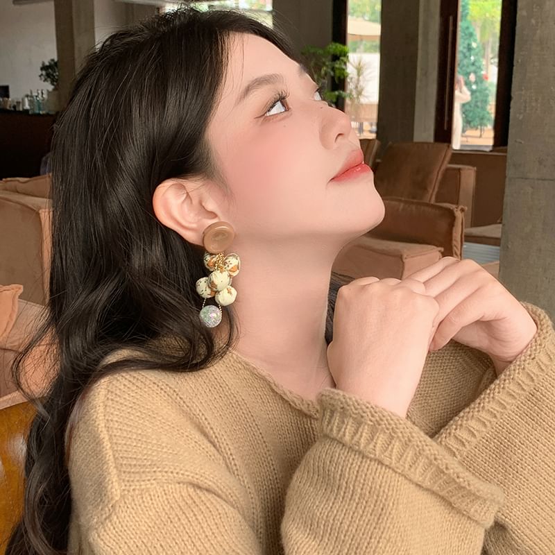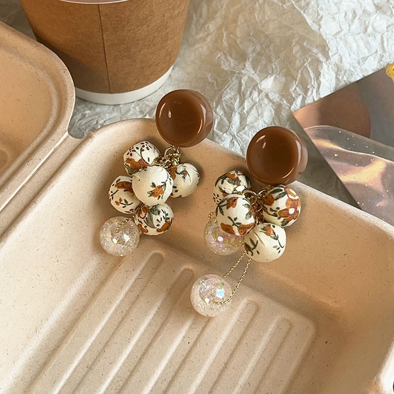 Beaded Fabric Drop Print Earring Floral