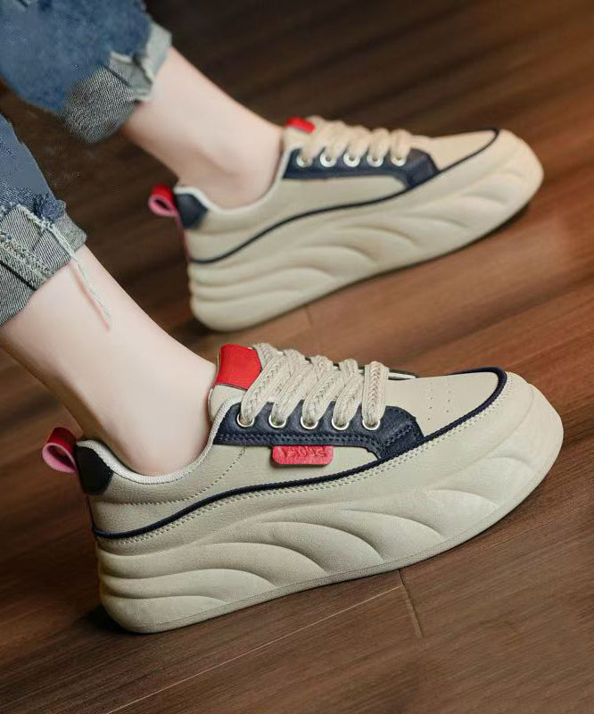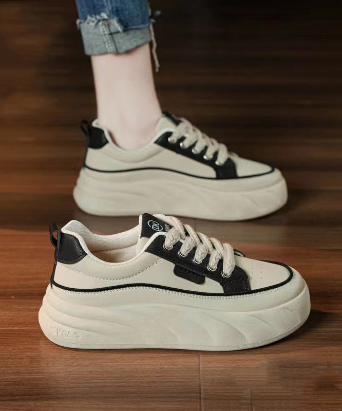 Beautiful Cross Strap Splicing Platform Flat Shoes Black Faux Leather AG1004