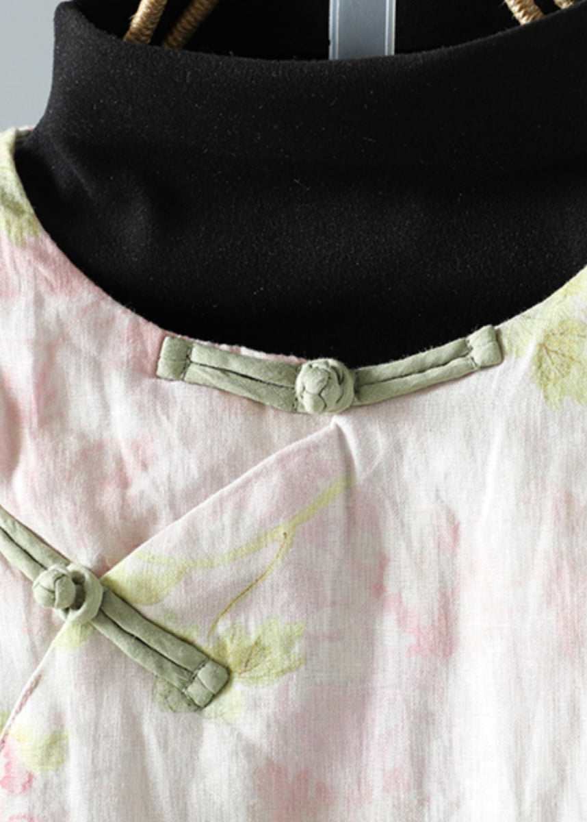 Beautiful Pink Stand Collar Patchwork Print Fine Cotton Filled Oriental Coats In Winter TM039