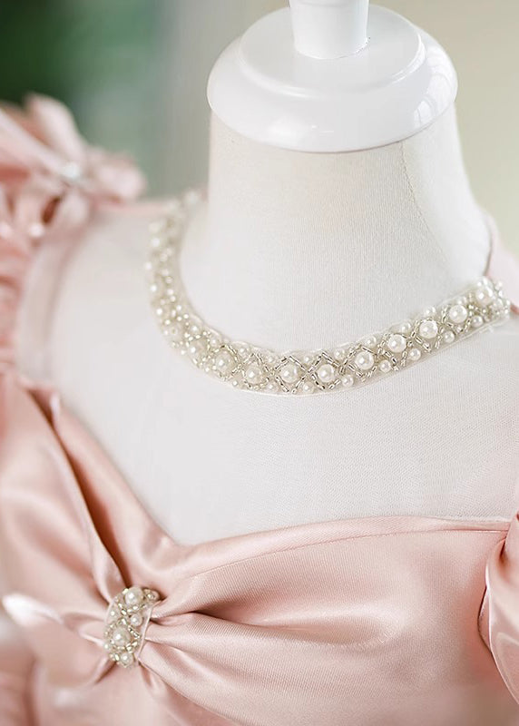 Beautiful Pink V Neck Bow Silk Kids Maxi Dress Summer YS023