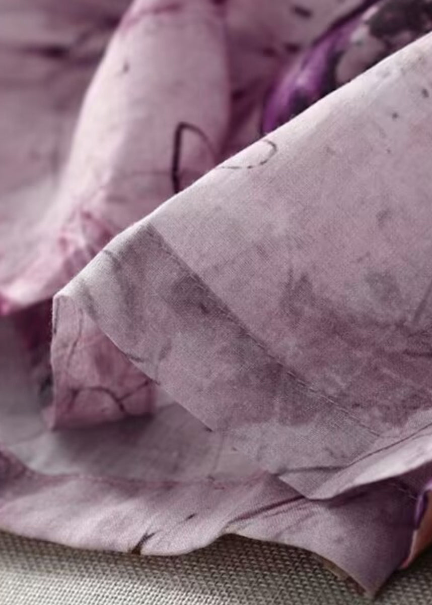 Beautiful Purple O Neck Print Lace Up Cotton Dress Half Sleeve GG027