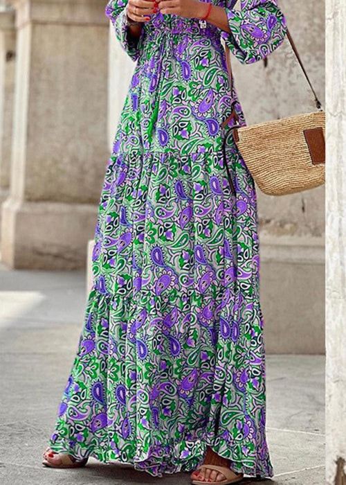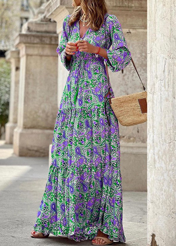 Beautiful Red V Neck Print Lace Up Ankle Dress Fall QA025