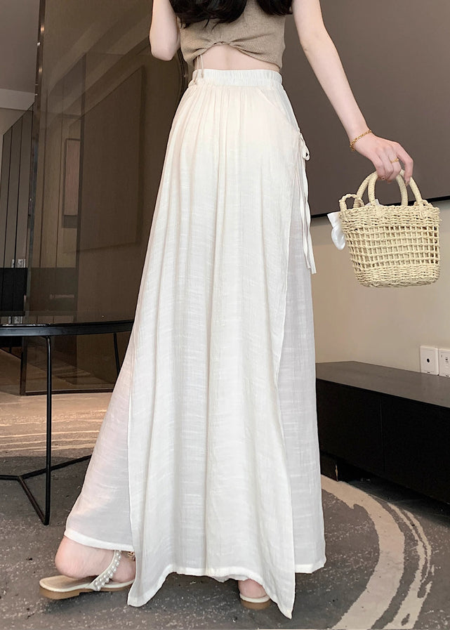 Beige Lace Up Linen Wide Leg Pants Elastic Waist Fall WQ046