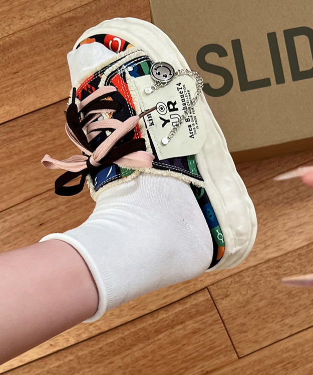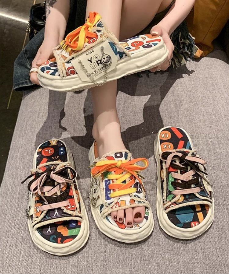 Beige Platform Lace Up Splicing Canvas Slide Sandals JJ021