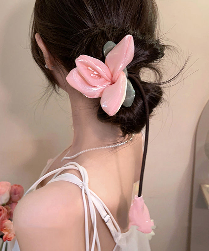 Cute Pink Crystal Pearl Tulle Floral Tassel Drop Earrings LL007