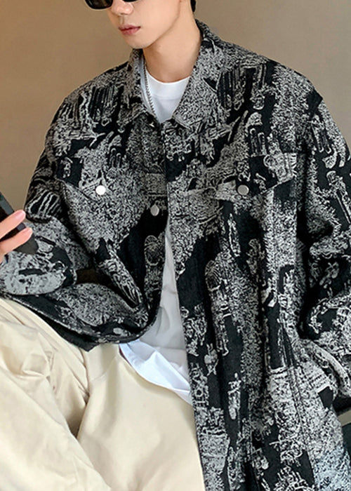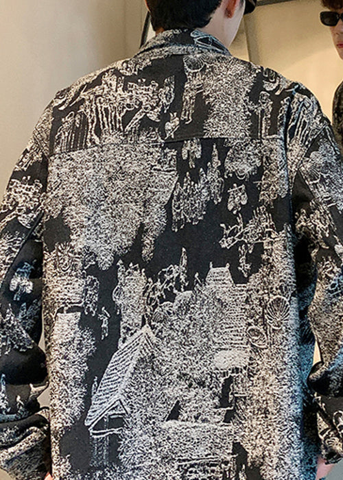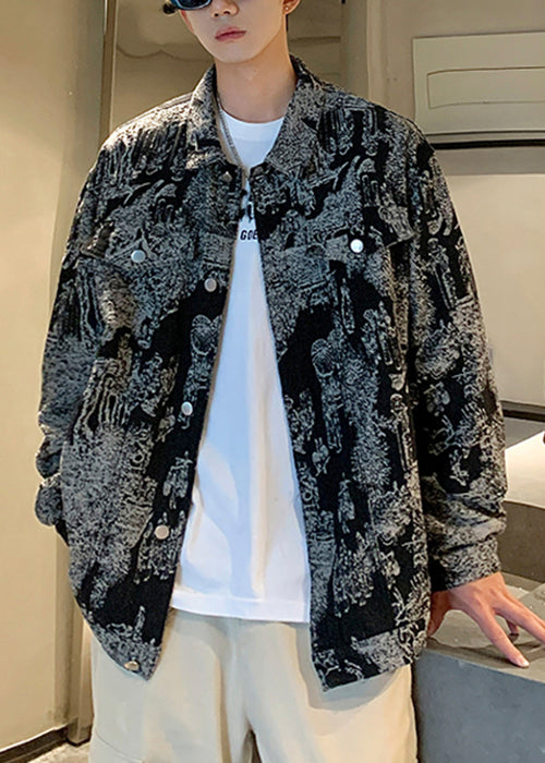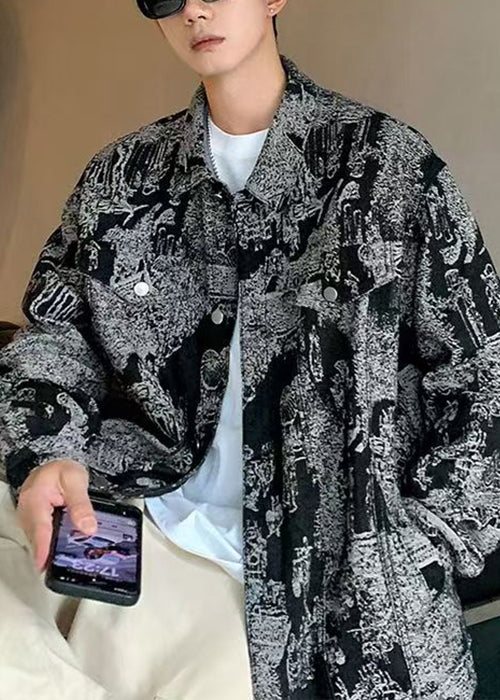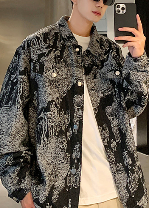 Black Button Fall Mens Coats Peter Pan Collar WA027