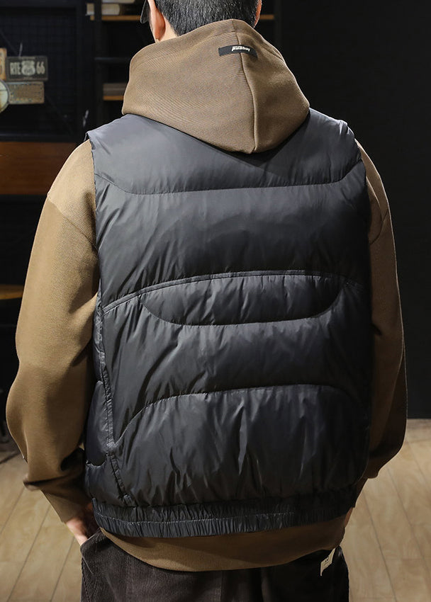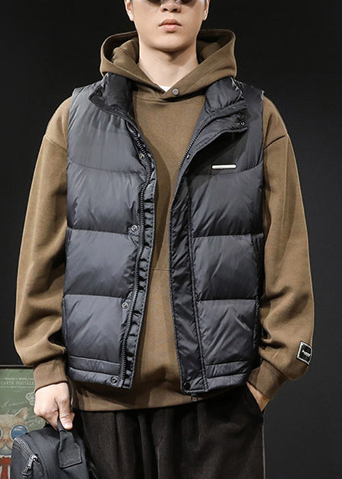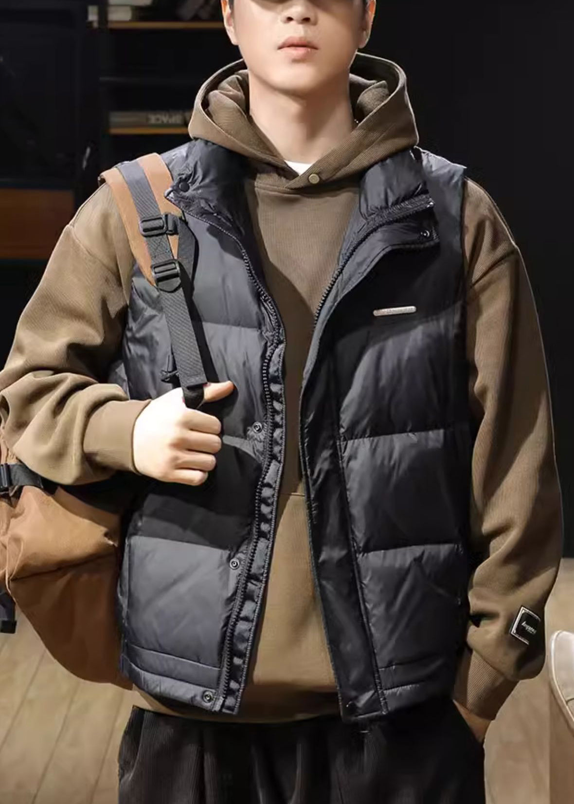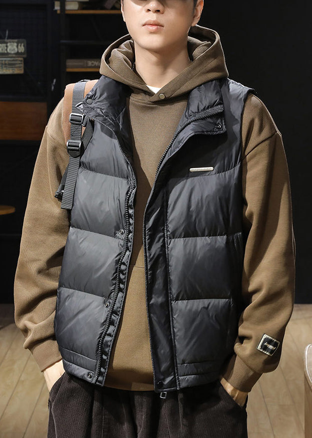Black Button Men Down Waistcoat Stand Collar Sleeveless EQ021