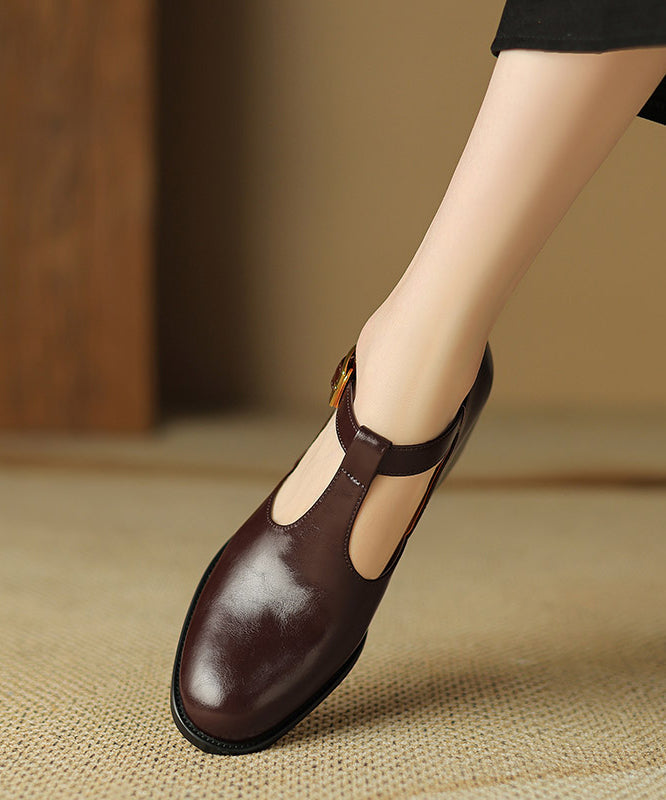 Black Cowhide Leather Splicing Chunky Shoes Hollow Out