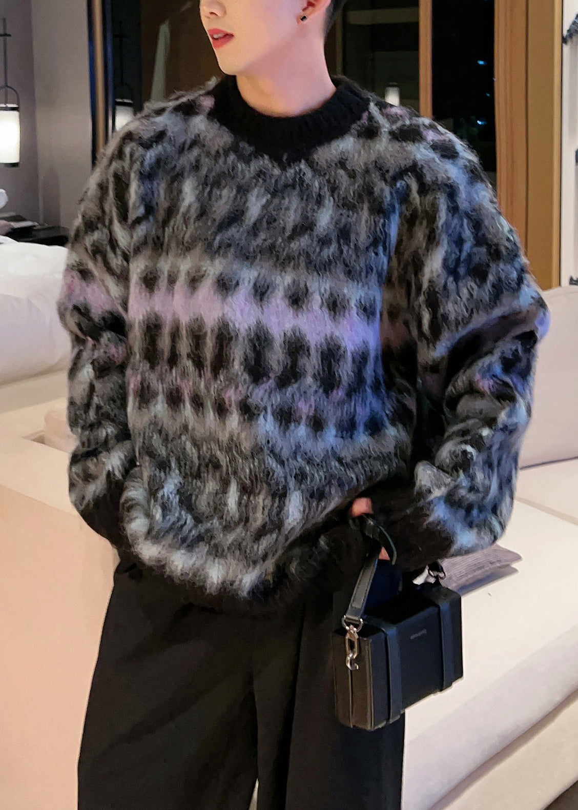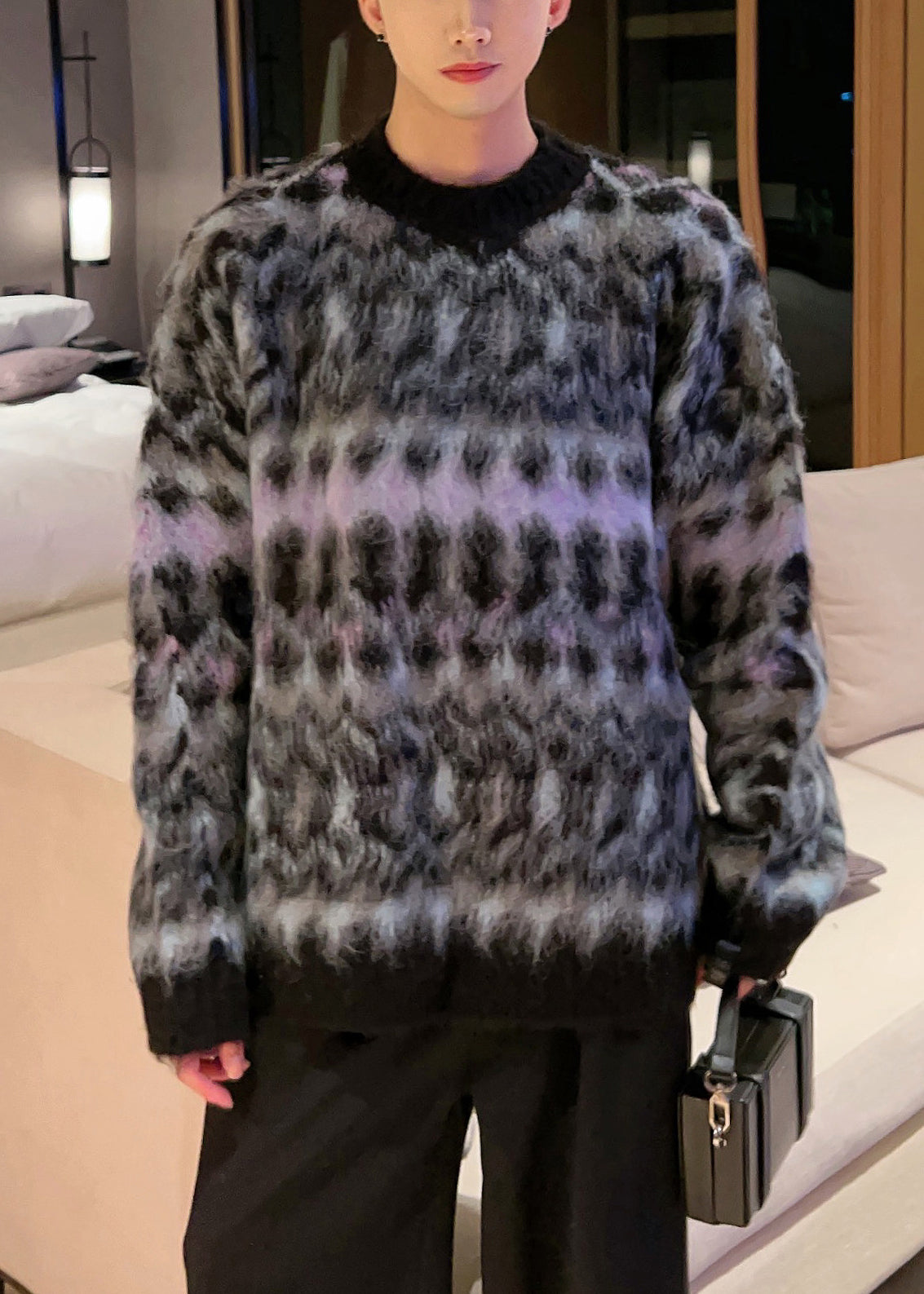 Black Cozy Patchwork Cotton Knit Fall Men Sweaters O Neck QH035