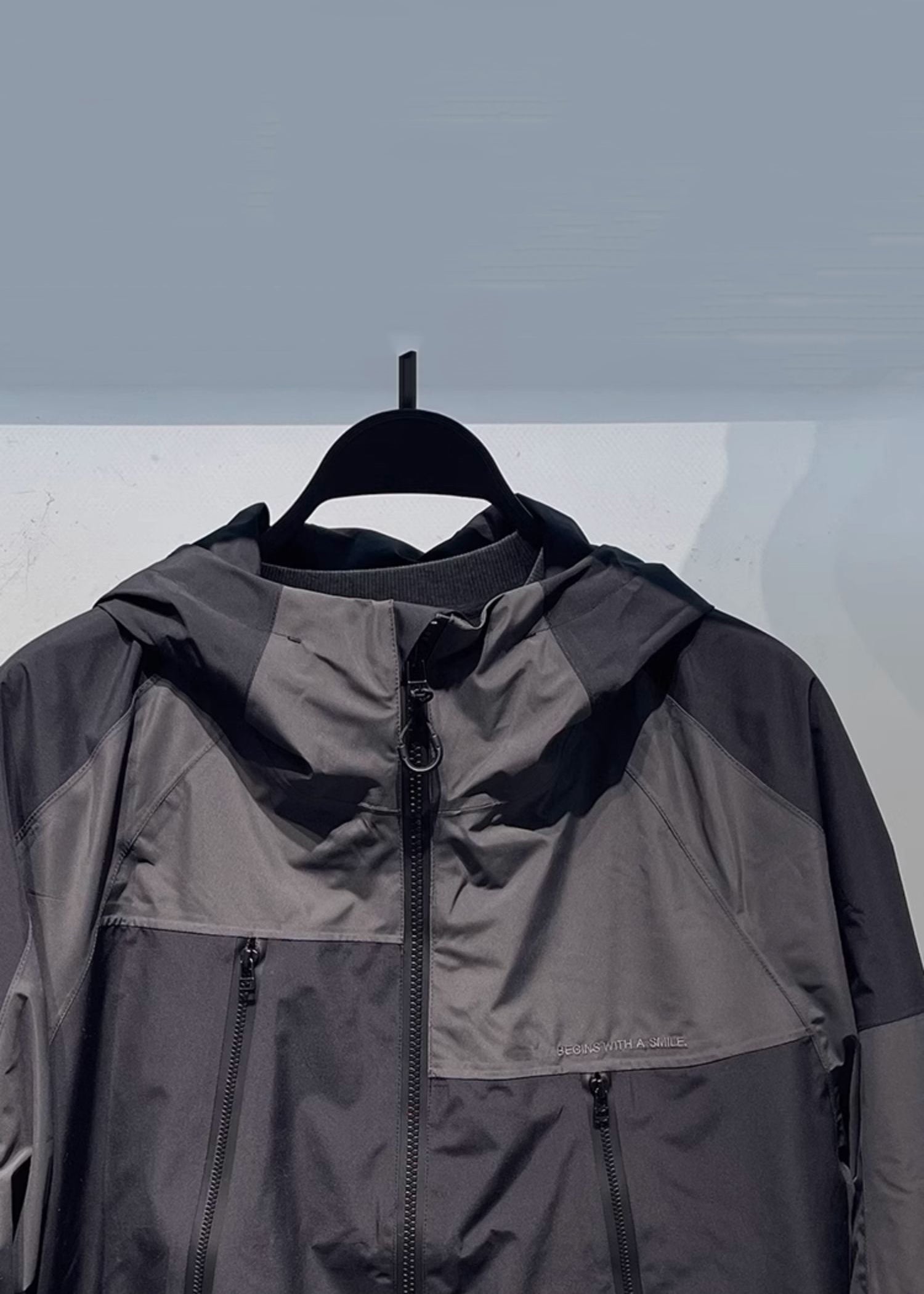 Loose Black Zippered Patchwork Cotton Mens Coat Hooded Spring