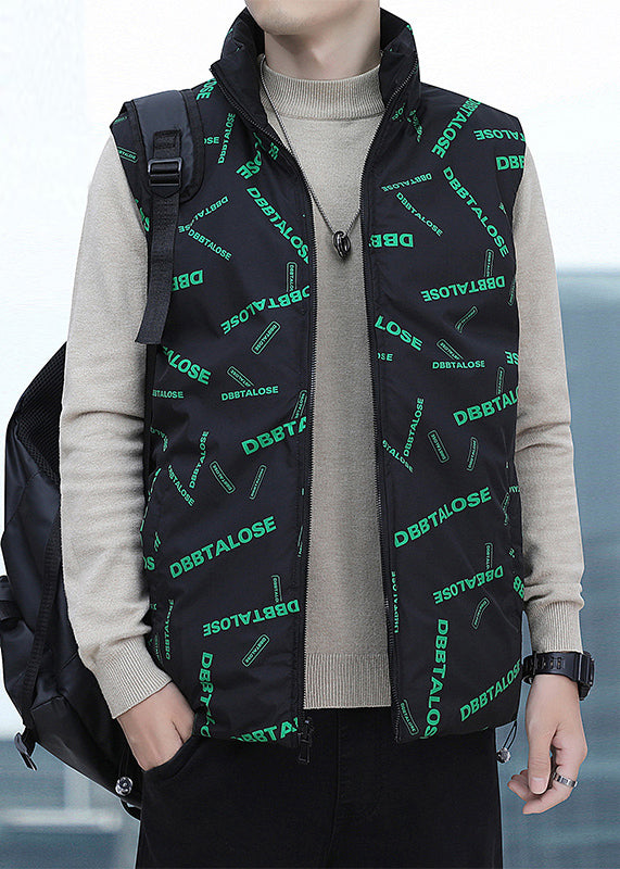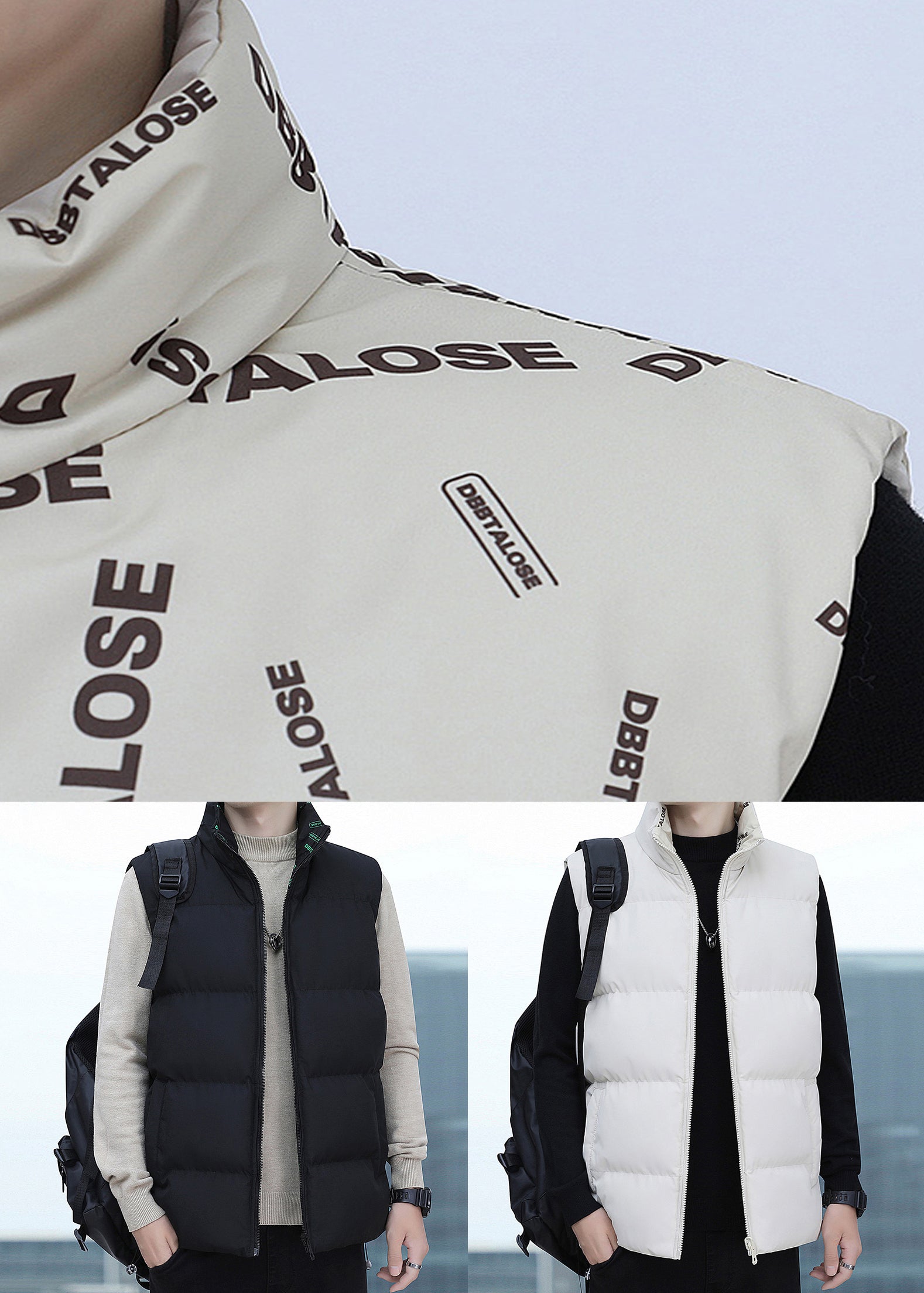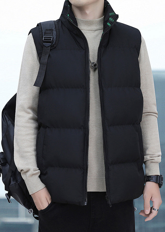 Black Pockets Cotton Filled Men Waistcoat Coat Zip Up Winter
