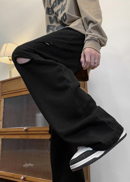 Black Cotton Fall Men Pants with Elastic Waist and Sophisticated Pockets