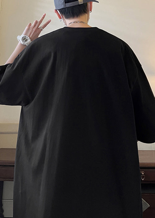 Black Letter Print Loose Cotton Mens T Shirts O Neck Summer