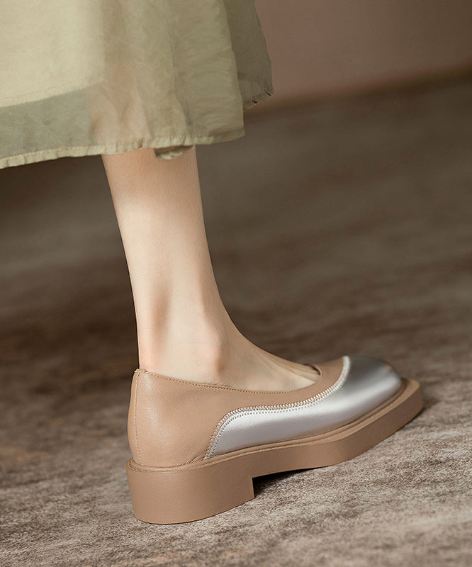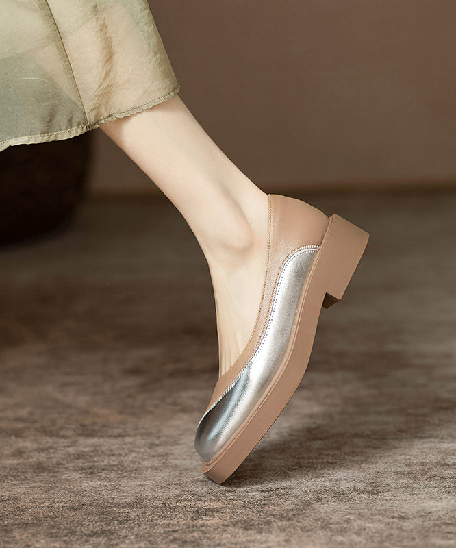 Black Women Comfy Splicing Chunky Cowhide Leather Loafer Shoes OI002