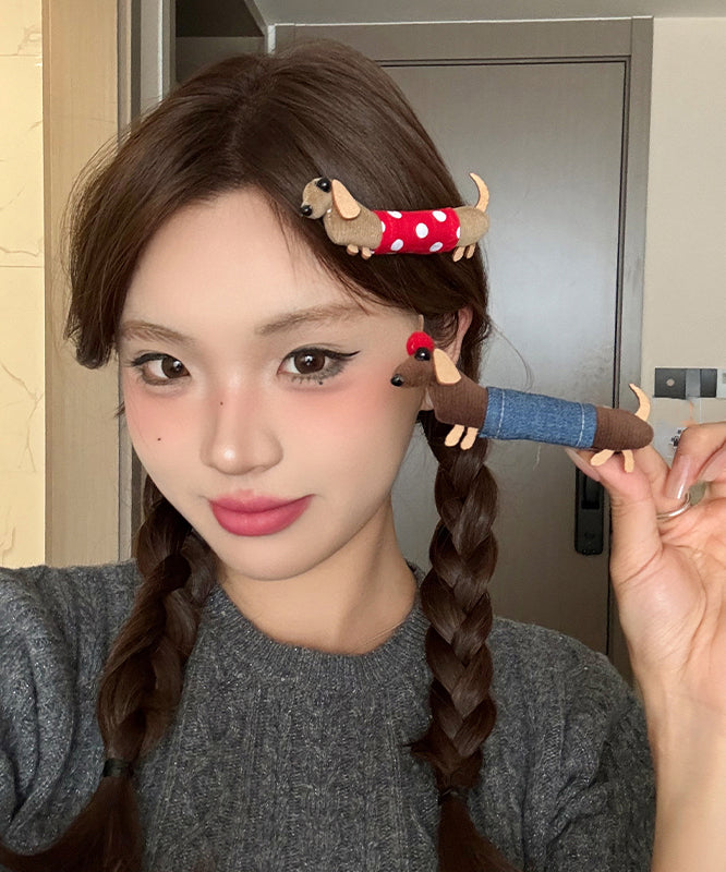 Blue Cloth Handmade Hairpin Dot Dachshund