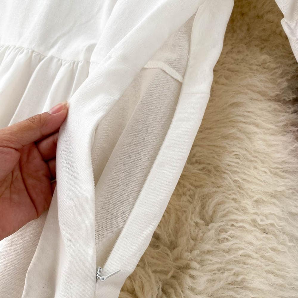 Bohemian Navy O-Neck Lacing Embroidered Flower Lantern Sleeve A-line Dress AR1011
