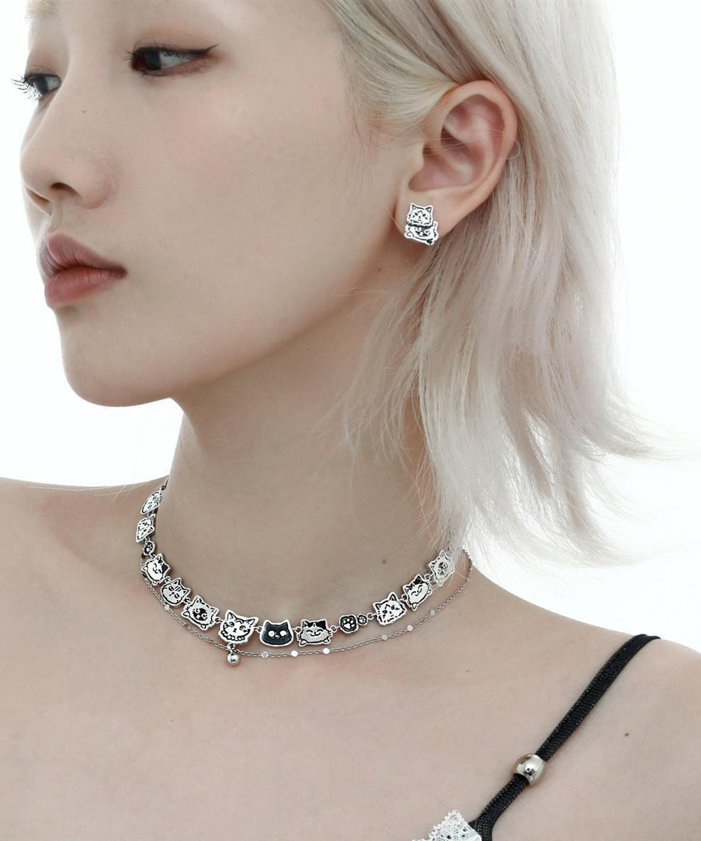 Bohemian Stainless Steel Silk Cat Necklace Double-Layer Graffiti