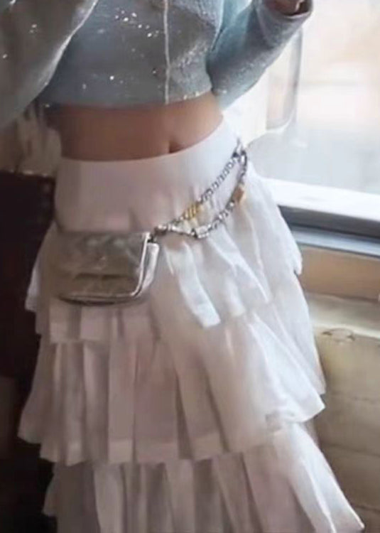 Bohemian White Wrinkled High Waist Cotton Skirt Summer AZ1043