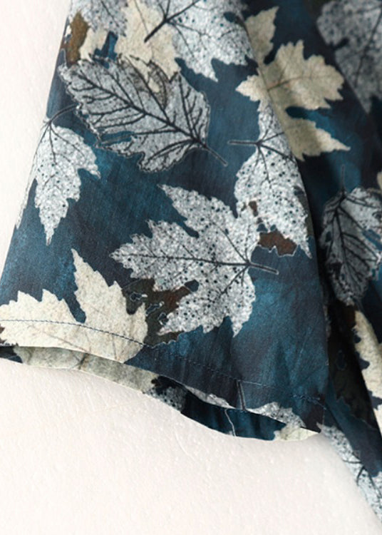 Boho Blue V Neck Print Tie Waist Cotton Dress Summer AM1043