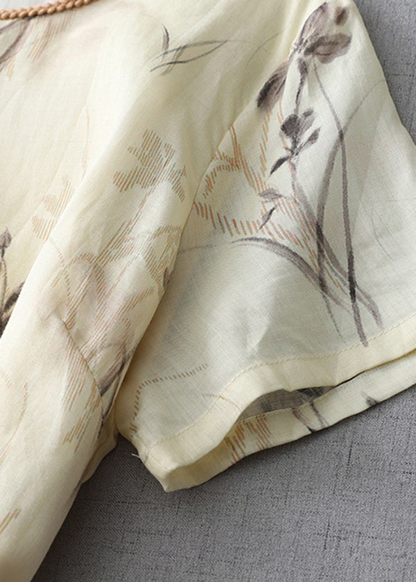 Boutique Apricot O-Neck Print Tie Waist Cotton Dress Summer AM1044