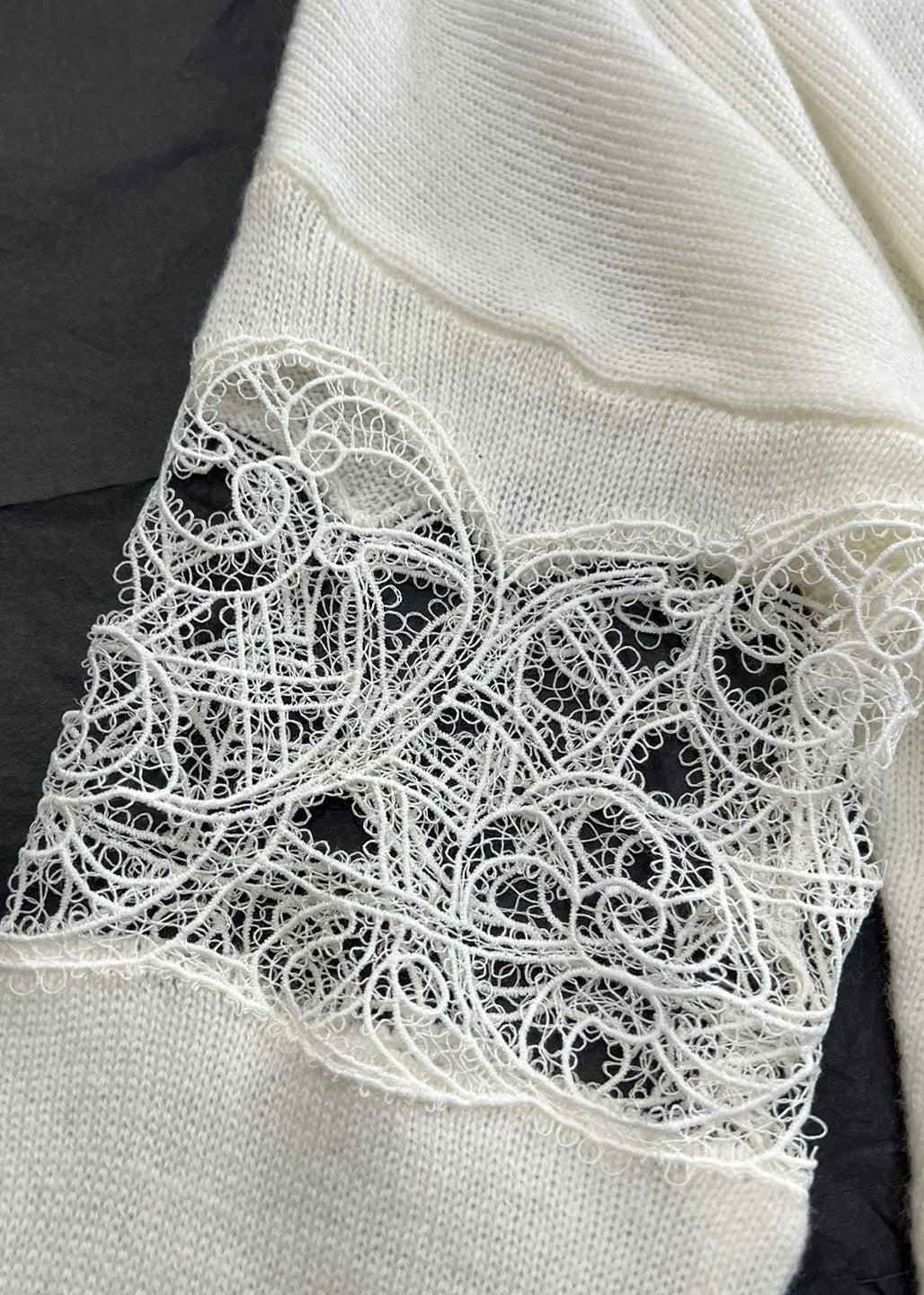 Boutique Beige Cold Shoulder Lace Patchwork Woolen Knit Sweaters Fall RV027