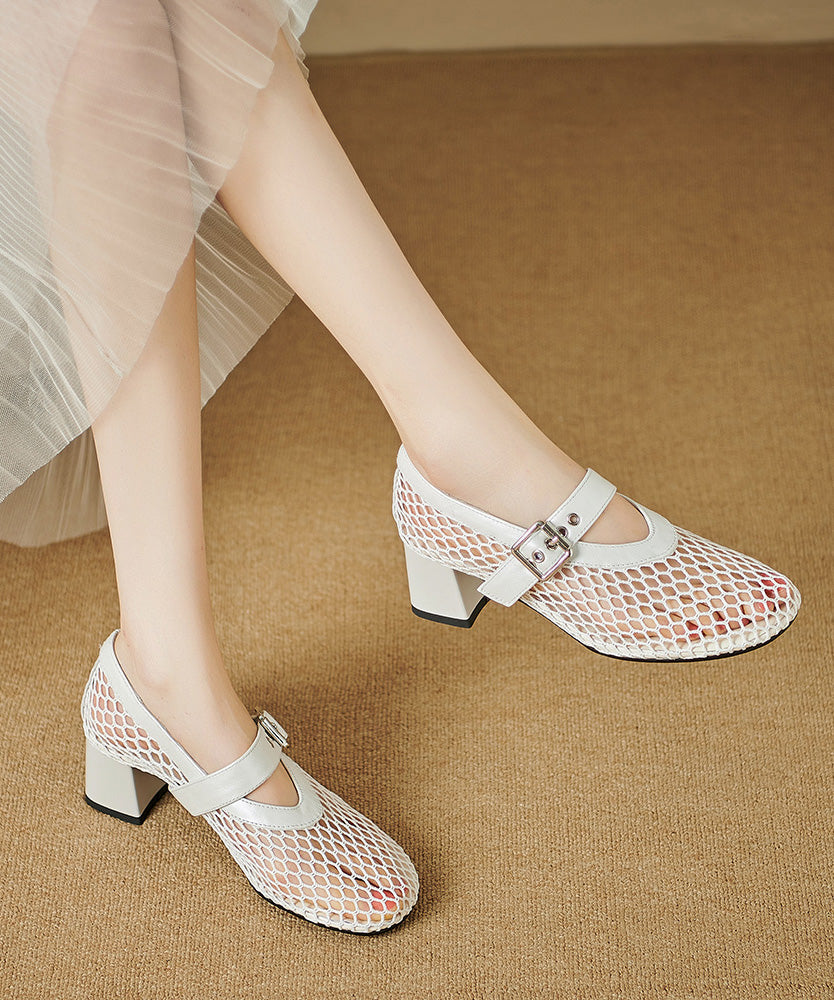 Boutique Black Buckle Strap Hollow Out Chunky Heel Sandals AP1062