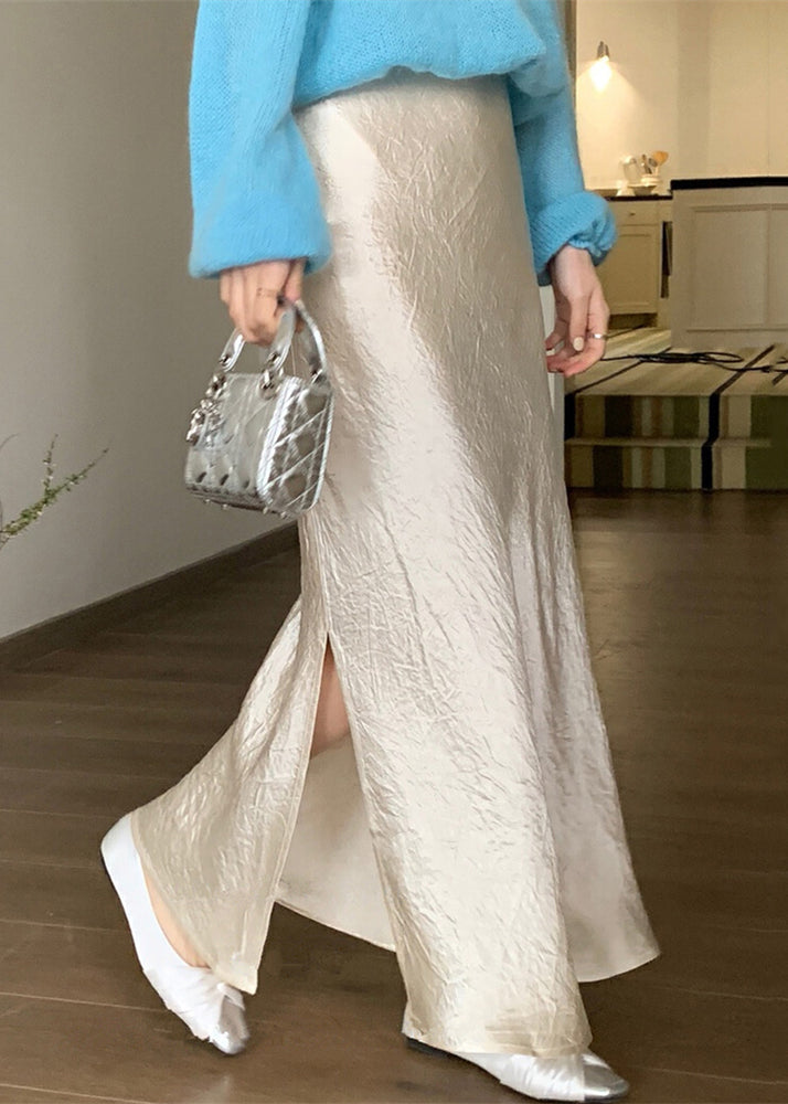 Boutique Black Side Open Solid High Waist Silk Maxi Skirts Fall QP060