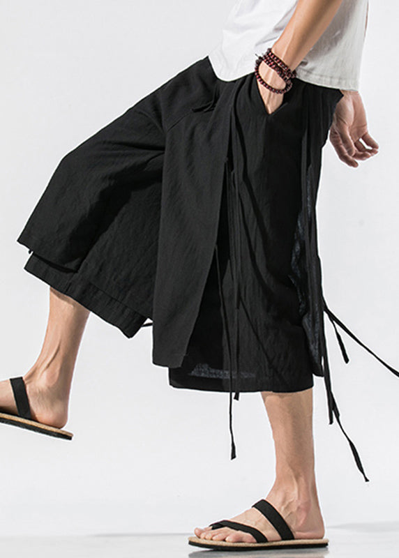 Boutique Black Tie Waist Tassel Mens Wide Leg Pants YT021