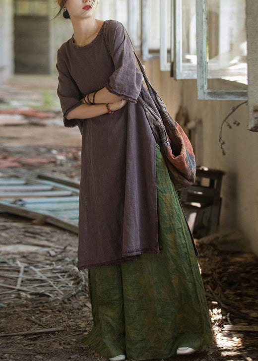 Discover the lavishness of Boutique Green's O Neck Side Open Linen T Shirt Dresses for the Summer season. Elegant and exclusive, these dresses evoke a sense of sophistication and grace with their side open design and high-quality linen material. Elevate your style with these premium pieces, perfect for the world of fashion and art.