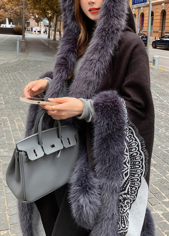 This elegant Boutique Handmade Black Hooded Patchwork Faux Fur Shawl, crafted with expert care, exudes exclusivity and sophistication. Its luxurious faux fur and intricate patchwork design evoke feelings of refined luxury and artistry, making it the ultimate fashion statement.